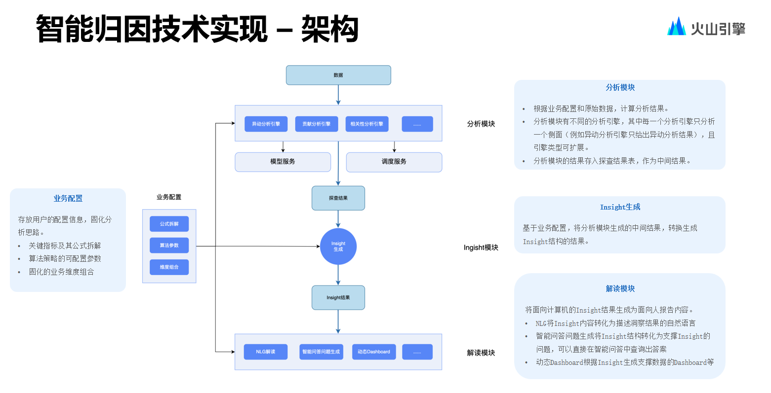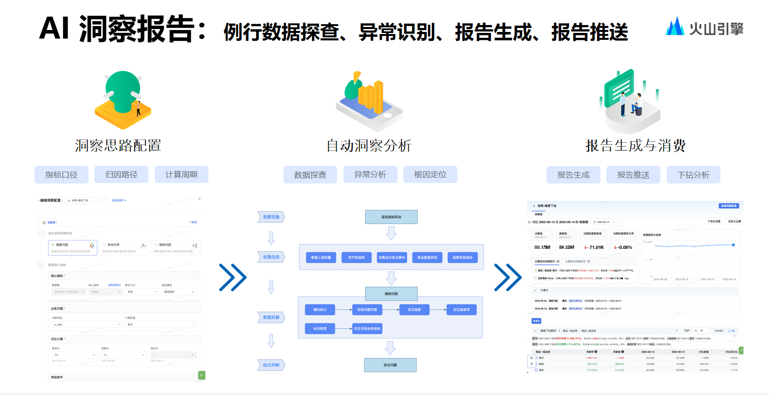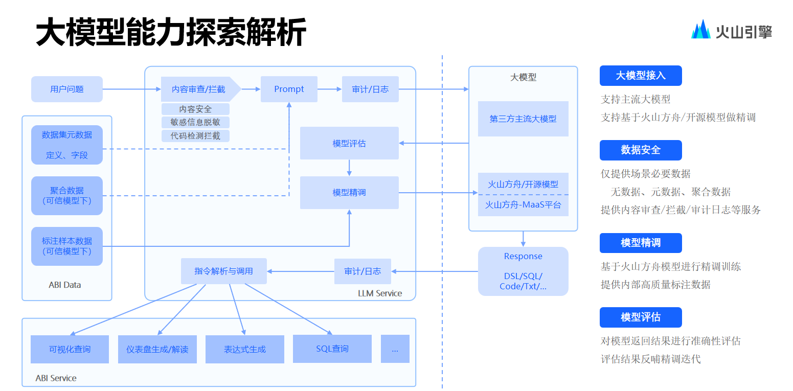 导读:大模型能力的发展和成熟,催生出新一代智能化 BI—— ChatBI,即通过自然语言处理(NLP)与大型语言模型(LLMs)的结合,极大简化数据分析过程,提高效率并降低分析门槛。火山引擎数智平台旗下智能数据洞察产品DataWind近期上线ChatBI能力,提供智能修复、多语法适用等能力,在性能上实现秒级响应、一键生成。用户只需要通过文字描述需求, 就能生成指标,快速实现数据获取、分析计算与图表搭建,大幅降低数据消费门槛。本篇文章将从技术架构、实现路径、总结展望几个方面,拆解火山引擎数智平台如何落地ChatBI能力。