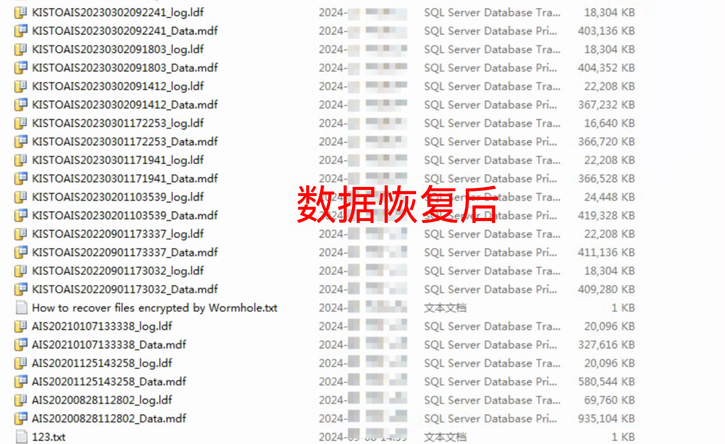 被.Wormhole勒索病毒加密后的数据恢复案例: