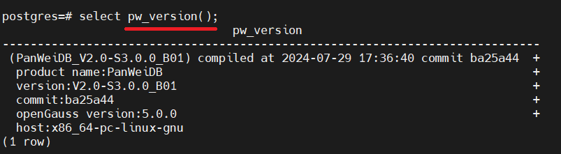 通过执行以上函数,可以获取到当前登录的磐维数据库的版本信息: