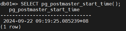 3、获取磐维数据库启动的时间:pg_postmaster_start_time( )