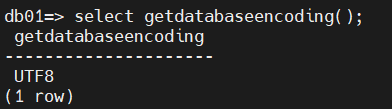8、查看数据库的编码方式:getdatabaseencoding( )