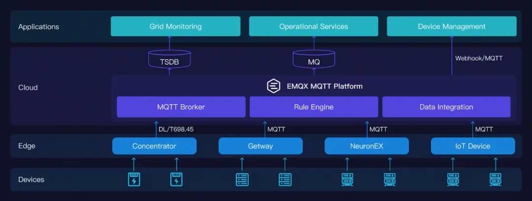 在智慧能源建设中,EMQX 被广泛应用于能源系统的实时监控与管理。通过收集来自能源网络中各种传感器数据,实现对能源消耗、储能量以及运输状态的精确监控。同时,EMQX 支持分布式能源管理,帮助企业优化能源分配,提升可再生能源利用率,在储能系统、电动汽车充电站等场景下确保数据的安全高效传输,推动了智慧能源行业的数字化转型和技术进步。