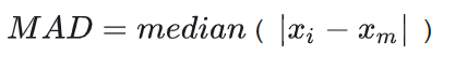 在统计学中,我们把这种检测异常值的方式称为 中位数绝对偏差(Median Absolute Deviation,MAD) 的方法,可以用来识别异常值并将其排除在外。MAD是一种基于中位数的离散度量,它可以帮助识别数据集中的异常值。