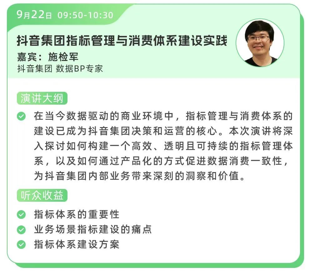 在当今数据驱动的商业环境中,指标管理与消费体系的建设已成为抖音集团决策和运营的核心。本次演讲将深入探讨如何构建一个高效、透明且可持续的指标管理体系,以及如何通过产品化的方式促进数据消费一致性,为抖音集团内部业务带来深刻的洞察和价值。