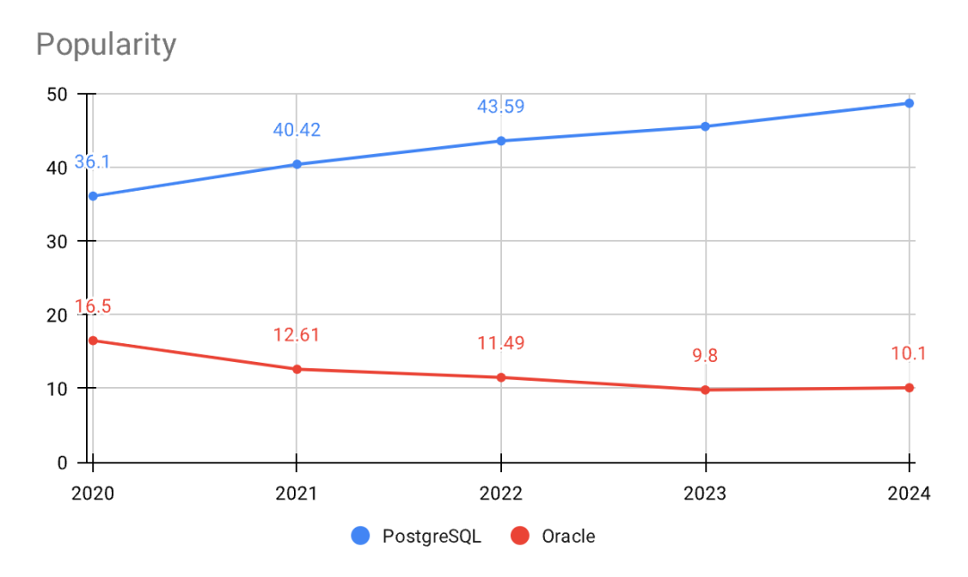 我再重复一下一开始说的话:只要花 5,000 美元就能实现的事情,为什么要花 100,000 美元呢?PostgreSQL 在一系列标准上都比 Oracle 具有多项关键优势。PostgreSQL 的开源特性提供了显著的成本优势,使组织能够将投资转移到其他地方。它的可靠性、可扩展性和性能与 Oracle 相当,使其成为关键任务应用程序的可行选择。安全性和可扩展性也是 PostgreSQL 的亮点,这要归功于其透明的开发流程和庞大的扩展生态系统。充满活力的社区和丰富的免费资源使 PostgreSQL 更易于学习、实施和维护,即使对于预算有限的组织也是如此。尽管 Oracle 仍然是一个功能丰富的强大数据库系统,但其高成本和专有性使其对寻求灵活性和成本效益的组织吸引力较小。随着越来越多的公司认识到开源软件的好处,PostgreSQL 的采用率不断增长,使其成为现代数据管理的首选。对于正在评估数据库选项的组织来说,PostgreSQL 是一个可靠、可扩展且经济高效的 Oracle 替代方案,具有很强的说服力。无论您是希望扩展规模的初创公司,还是希望降低成本的企业,PostgreSQL 都能提供在当今数据驱动的世界中取得成功所需的工具和灵活性。