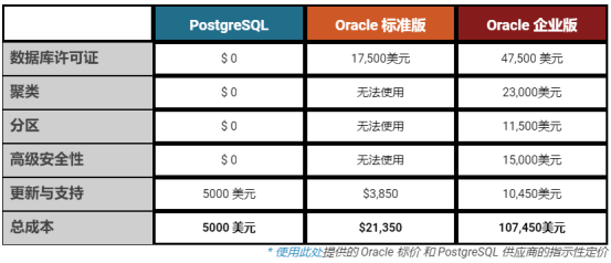 PostgreSQL和Oracle之间最显著的区别之一在于它们的成本结构。PostgreSQL是开源的,并且带有自由许可证,可以免费使用,而Oracle则采用商业许可模式运作,通常涉及大量的前期投资和持续的成本。PostgreSQL 完全免费 - 没有许可费、没有强制性支持成本,也没有供应商锁定。这是一个显著的优势,特别是在经济不确定时期,企业需要控制成本。另一方面,Oracle 需要根据用户、处理器或实例的数量来支付昂贵的许可证,这些费用很快就会累积到令人望而却步的地步,尤其是在组织需要扩展时。考虑到总拥有成本,PostgreSQL 全面胜过 Oracle。Oracle 的许可费用只是开始,维护、升级和支持会增加更多成本。PostgreSQL 是开源软件,没有许可费用,并且在支持方面具有灵活性。组织可以从众多供应商中进行选择,而不会被锁定在一家供应商上。选择 PostgreSQL 可以节省大量时间。无需支付与 Oracle 相关的高额年费,公司可以将资源转移到其他领域,如开发、创新或客户体验。此外,PostgreSQL 的灵活性和可扩展性使公司能够构建所需的精确解决方案,而无需购买额外的昂贵 Oracle 模块。Oracle 的生态系统以隐性成本而臭名昭著。附加组件、扩展和附加服务很容易增加您的数据库预算。相比之下,PostgreSQL 提供了大量免费的强大扩展。无论您需要地理信息系统 (GIS) 功能、时间序列数据管理还是全文搜索,PostgreSQL 的开源模型都能提供高级功能,而且不会花费太多。