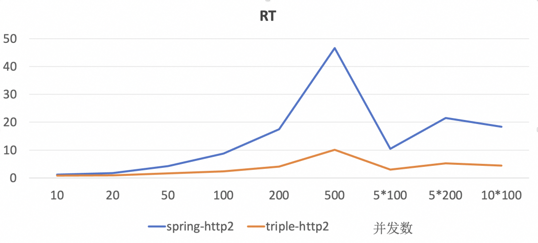 经过压测,简单 Rest 服务相较于传统 Spring Boot REST 服务,Triple X 服务的平均响应时间降低至 1/3,高压力下 QPS 提升 5 倍,同时内存分配量减少 50%,显著提升了系统整体性能和资源利用效率。