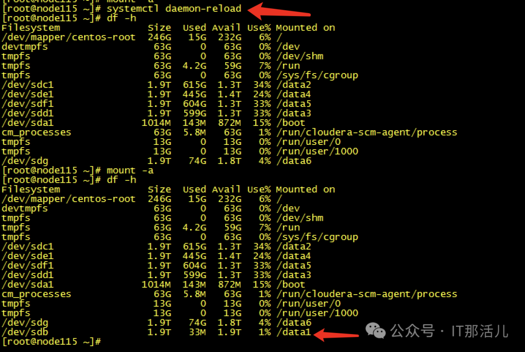 Step7cache清理完成后,再次创建raid0,发现可以创建成功并识别到新的磁盘sdb可以mkfs和挂在磁盘再次进行使用了:Step8此时新的问题再次出现,mount过后发现没有新的盘出现,而且无任何报错Step9 检查系统日志messages,发现给出了我们的答案原因大致是data1可能与之前的旧sdb还有绑定关系,我们需要手动reload一下,识别新的sdb。systemctl daemon-reload,执行此命令后再次挂载,我们发现已经可以正常使用/data1:测试使用,一切正常。恢复hdfs服务正常:至此,硬盘更换并重新使用完成。 END