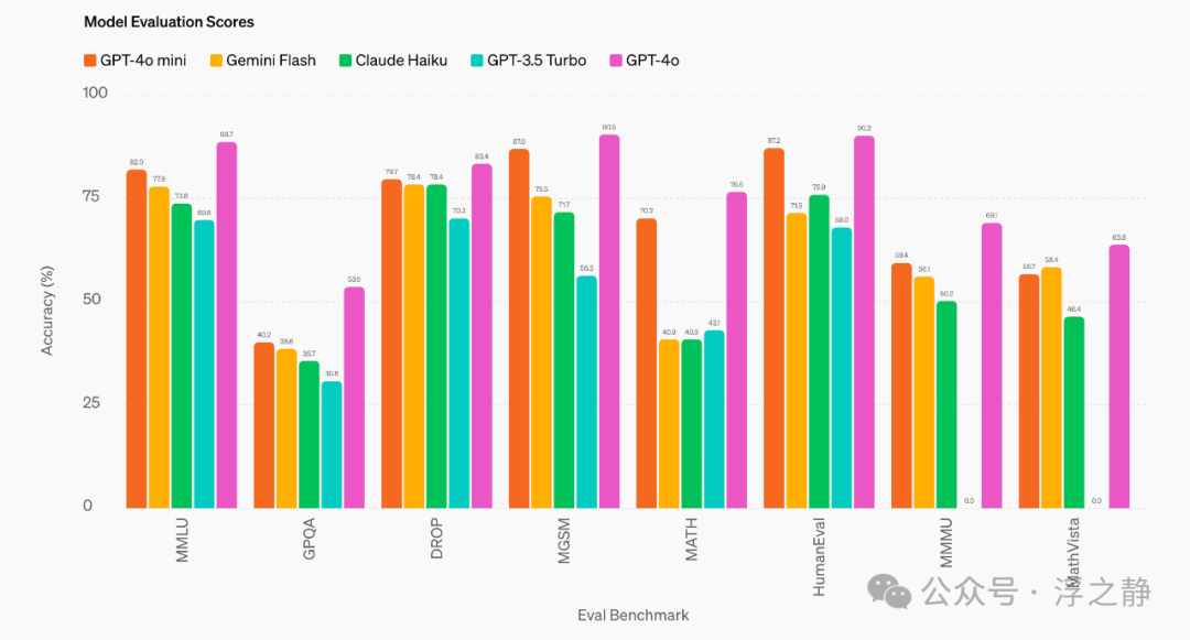 GPT-4o mini 在几个关键基准测试中表现出色: