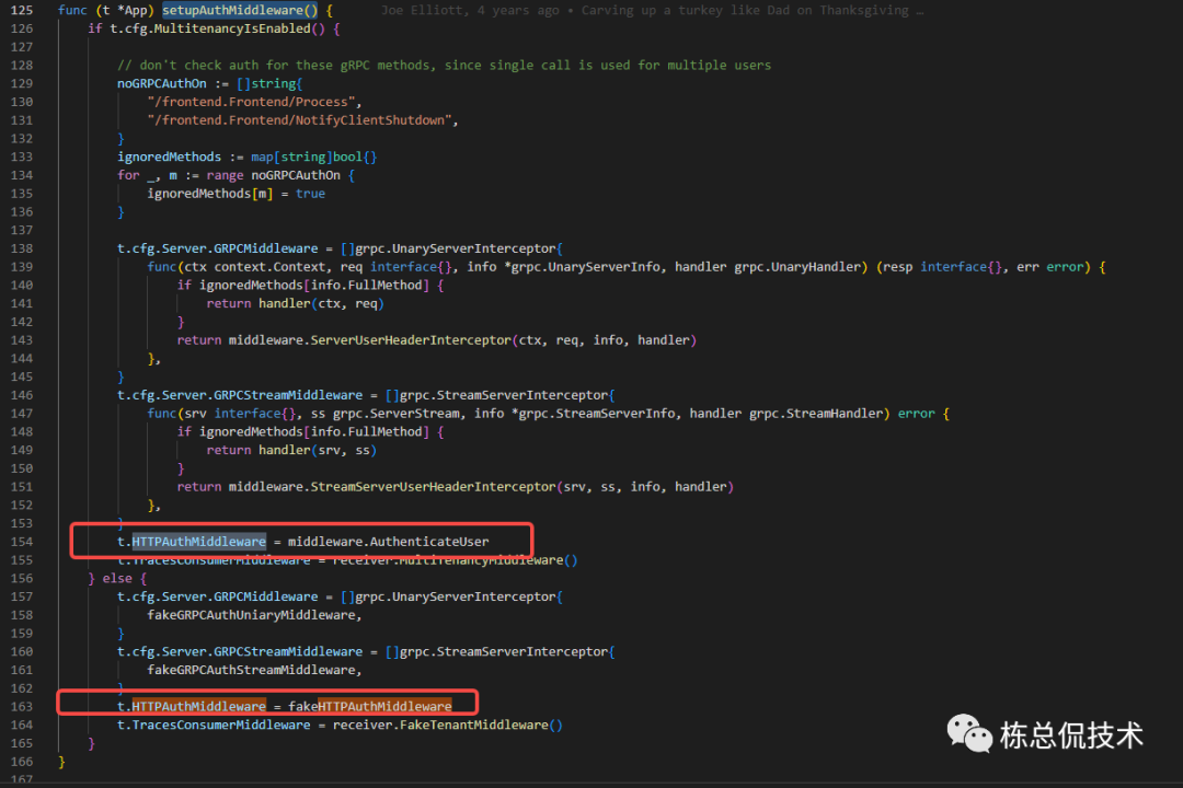 请求进入Query Frontend组件时,会依次调用t.HTTPAuthMiddleware