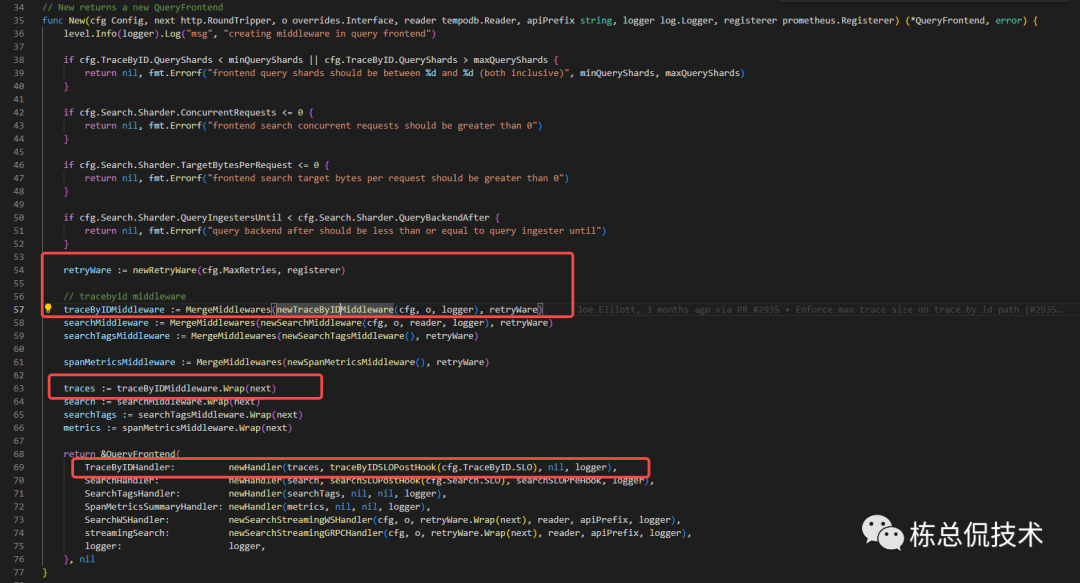 一次Wrap操作封装又传入了queryFrontend.TraceByIDHandler