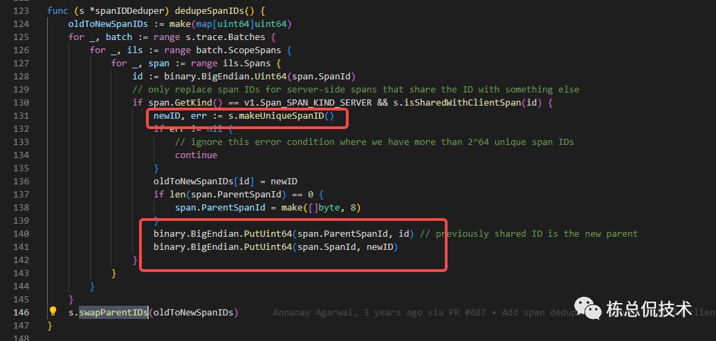 newDeduper:对查询返回的Span作去重、相同spanID的前后端服务父节点关系整理。