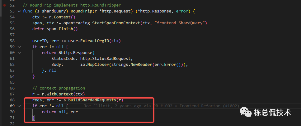 上一章节我们通过对Query Frontend组件进行debug了解各middleWare的加载和调用顺序,对在Query Frontend里middleWare的层层包含进行了拆解,了解其运行机制,这一节将按照请求进入后是如何在各middleWare间传递的,每个middleWare的作用是什么来阅读Query Frontend组件的源码。