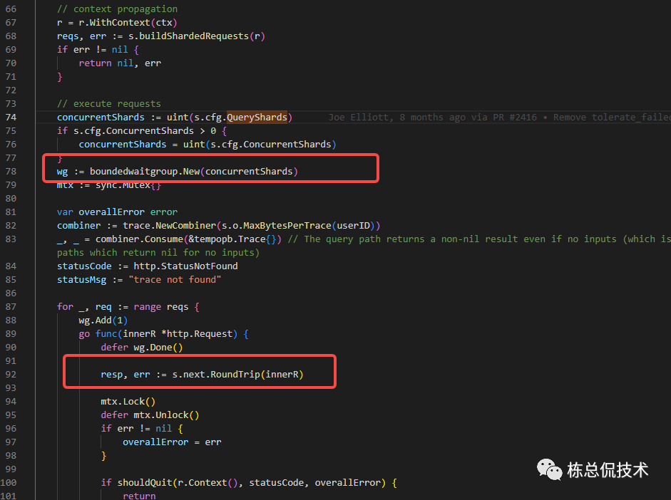 newTraceByIDSharder:对请求拆分成若干个小的请求后并发的进行查询后端(Querier)