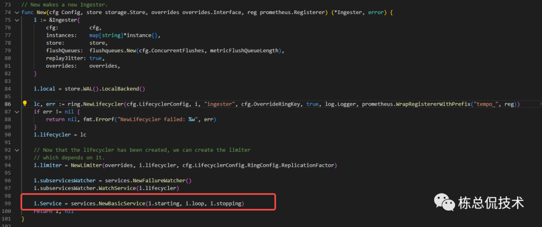 在初始化Ingester时,分别注册了starting、loop、stopping三个函数,分别表示service生命周期三个状态运行的回调函数