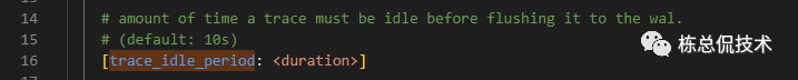 这里用到一个配置项trace_idle_period,表示trace需要在Ingester停留多长时间后才刷新至wal存储(tempodb)。
