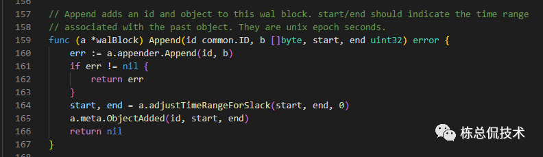 在这个文件内可以看到将tarce 编码后Append至appender对象的具体实现
