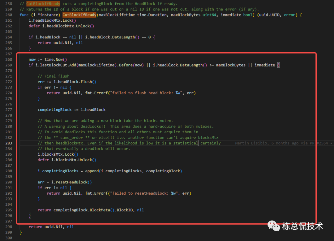我们再回到sweepInstance,在CutCompleteTraces之后,就会执行CutBlockIfReady。CutBlockIfReady会将上一步的产物headBlock进行处理,最终写入completingBlocks对象。