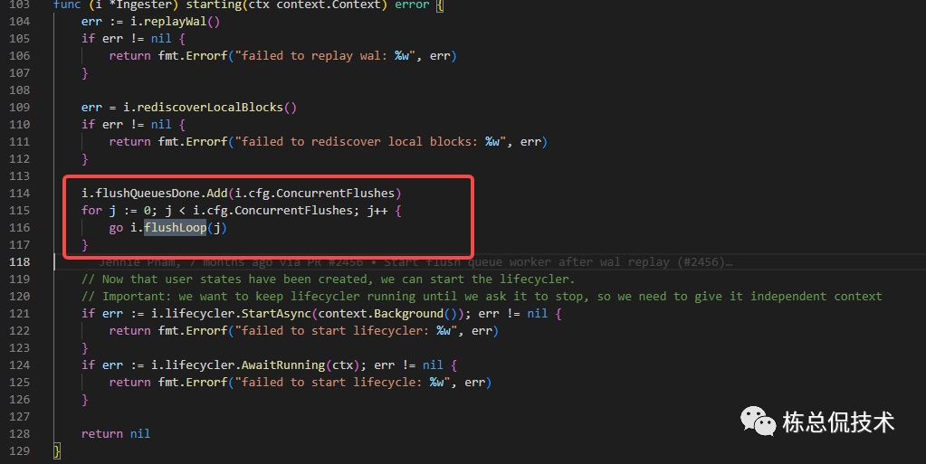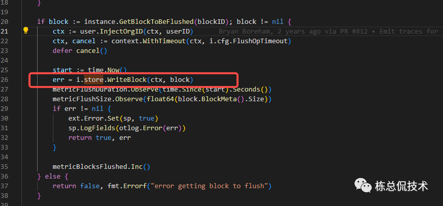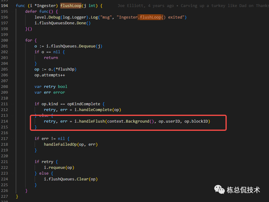loop函数中根据flush_check_period配置周期性对Ingester中的LiveTrace处理,最终写入completingBlocks,表示当前Blocks正在完成中。