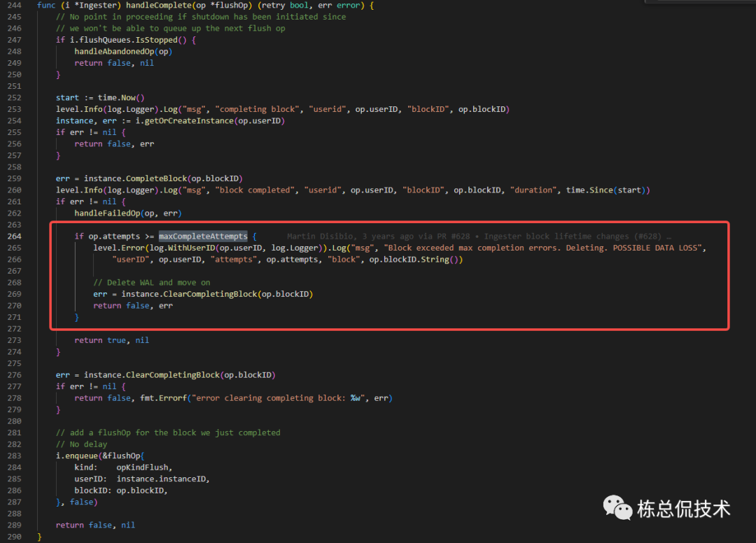 如果写入tempodb失败,会重试maxCompleteAttempts次数(3次)