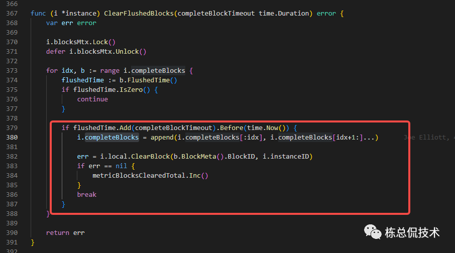 如果CompletingBlock成功转化为completeBlocks(表示已经写入到维护的tempodb),需要清理对应的CompletingBlock,并释放对应的内存空间。