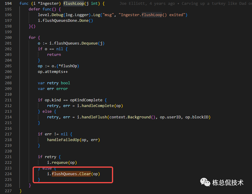 再次回到flushLoop,在该函数中同时也会根据ClearCompletingBlock中记录的opKindFlush操作执行任务。