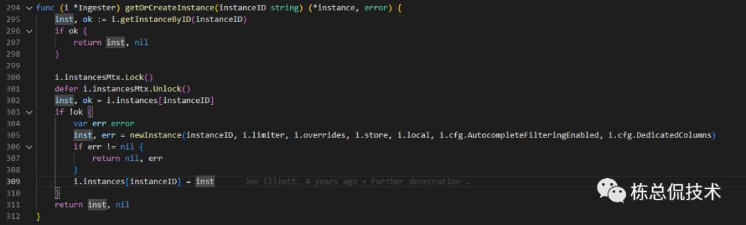 从instances(map[instanceID]instance)中根据租户名称获取Instance,不存在则创建Instance。