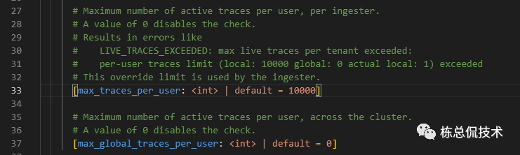 由所有的Ingester实例共有,表示总的Ingester限制数量,那么单个Ingester实例的限制数量= max_global_traces_per_user/ 实例数量