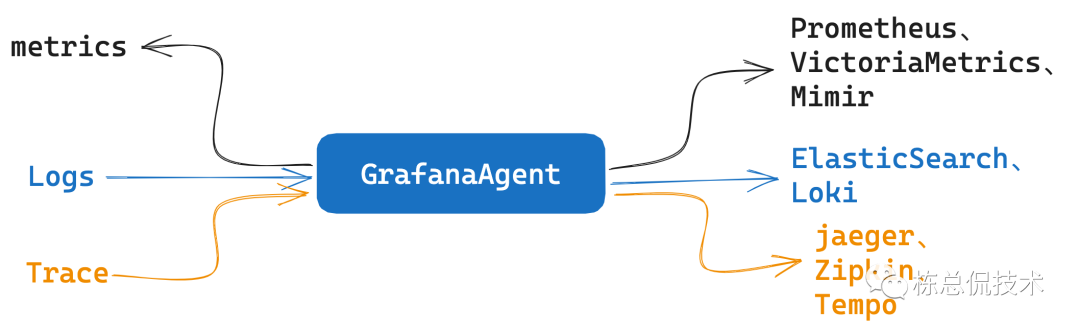 Grafana Agent集成了监控、日志、链路的处理转发相关客户端功能,可以完成对以上数据的采集。
