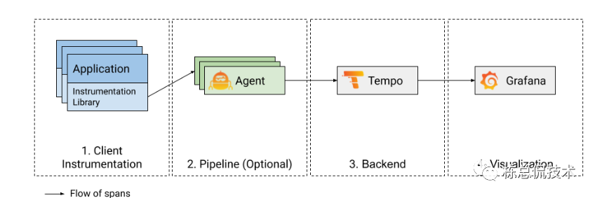 GrafanaAgent可以接收来自Jaeger、Zipkin等遵循OTel协议的链路数据,并在内部做处理后可以转发给链路后端服务进行处理(或展示),支持的后端包括Jaeger、Zipkin以及Grafana生态的Tempo。Grafana Agent对Trace的支持是通过集成了Opentelemetry-collector的核心代码实现的。