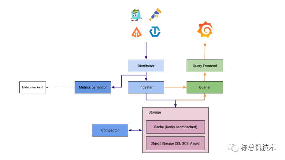 遵循OTel协议的Trace数据存储后端服务,Trace的数据流如下图: