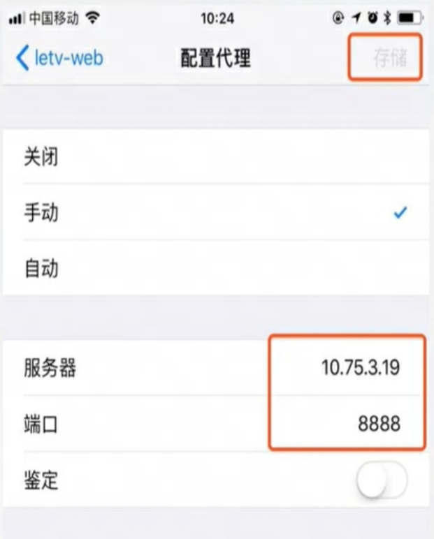 设置iOS HTTP代理,打开iOS设备对应WIFI设置,添加代理IP地址(Windows的局域网地址)和端口号(8888)。