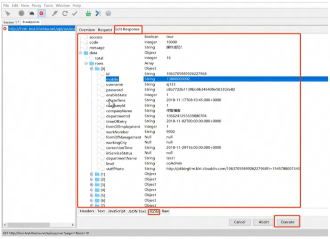 右键请求选择Breakpoints,再次发起请求,此时会自动跳转到Charles并显示该请求信息,点击 “Edit Request”,修改请求信息,点击“Execute”即可