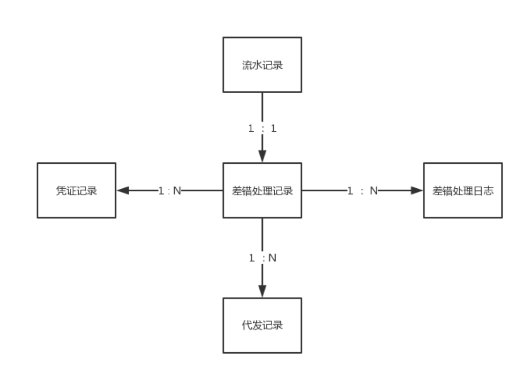 差错处理记录:对账过程中发现需要调整的差错情况,从三方流水或一方流水产生,目的是根据银行正确的订单状态调整我方错误的订单状态,每个差错案例维护一条记录。