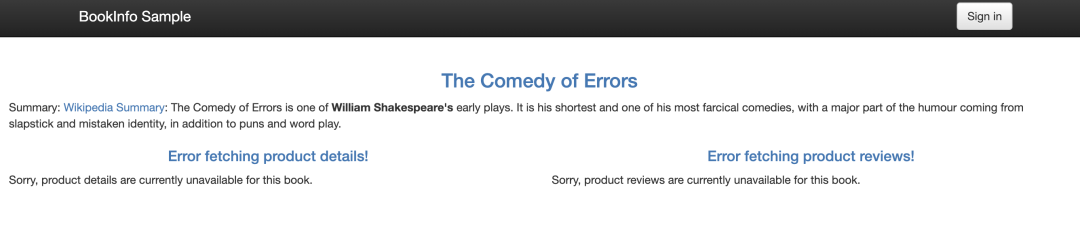 服务的三个不同版本已经部署并同时运行。我们可以在浏览器中访问 Bookinfo