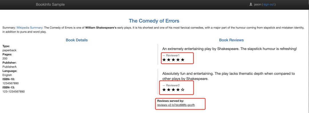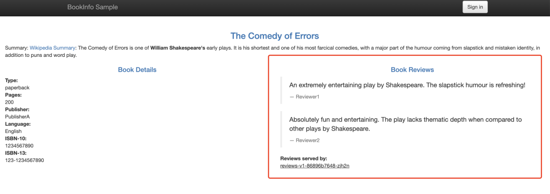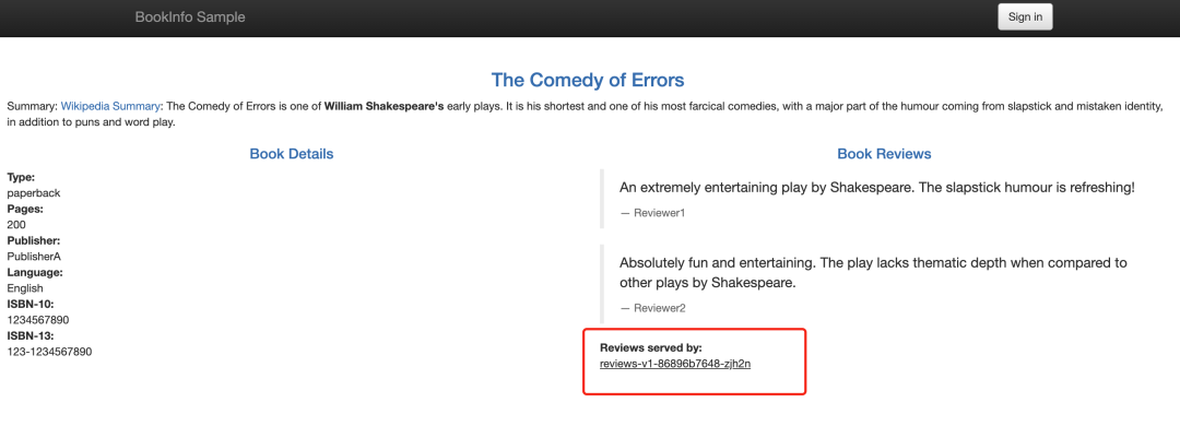 现在我们可以前往浏览器访问 Bookinfo 应用,多刷新几次可以看到评论始终访问到的是 v1