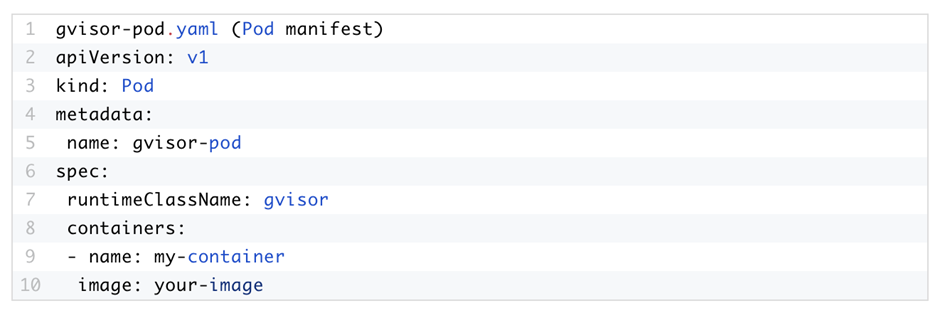 工作负载隔离:不同的工作负载可能有不同的安全需求,通过RuntimeClass,您可选择最合适的运行时,为每个工作负载提供所需的隔离和安全级别。 例如,对于安全敏感型工作负载,可使用 gVisor 或 Kata Containers 等更轻量级、更高效的容器运行时;对于其他工作负载则使用标准运行时,如 Docker 或containerd。 自定义运行时:RuntimeClass能够在 Kubernetes 环境中集成和使用自定义容器运行时。如果您已经开发或采用定制的运行时来满足需求,可为其定义RuntimeClass 并用于特定工作负载。 性能优化:不同容器运行时的性能各有不同,通过使用RuntimeClass,您可为每个工作负载选择最合适的运行时以优化性能。例如,对于需要更高资源利用率和更快启动时间的工作负载,可选择 gVisor 或 Kata Containers 等轻量级运行时。 合规和安全策略:组织通常有特定的安全策略或合规性要求,规定用于某些工作负载的运行时。RuntimeClass让您可通过为需要遵守特定安全准则的工作负载配置适当的运行时来执行这些策略。 动态运行时切换:RuntimeClass还支持为正在运行的工作负载动态切换运行时。这种灵活性使您可按需切换运行时,从而适应不断变化的工作负载需求或高效应对安全事件。
