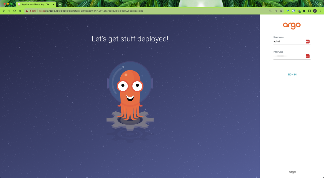 上述规则在 Argo CD APIServer 上校验 TLS,该服务器检测到正在使用的协议,并做出适当的响应。请注意,nginx.ingress.kubernetes.io/ssl-passthrough