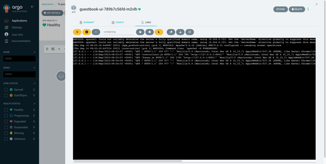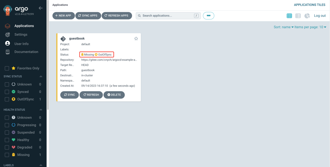 根据您的应用程序自动同步策略,Argo CD 将自动部署新的镜像版本或将应用程序标记为不同步,您可以通过同步应用程序来手动触发镜像更新。