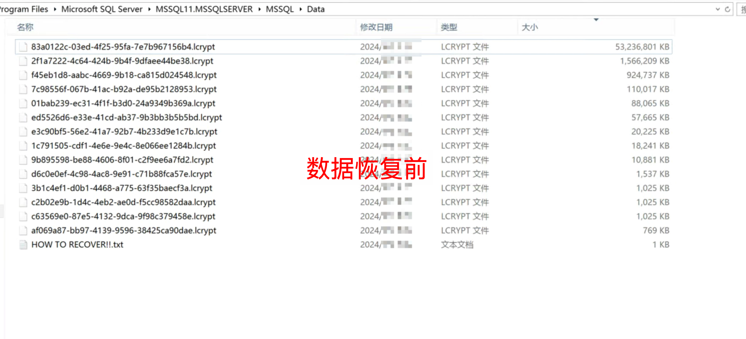 近年来,勒索病毒的攻击愈发猖獗,. lcrypt勒索病毒就是其中一种恶性病毒。它通过加密用户的文件,要求支付赎金以恢复访问。这种攻击不仅给个人和企业带来了巨大的经济损失,也严重影响了正常的工作和生活。如果受感染的数据确实有恢复的价值与必要性,您可添加我们的技术服务号(sjhf91)进行免费咨询获取数据恢复的相关帮助。