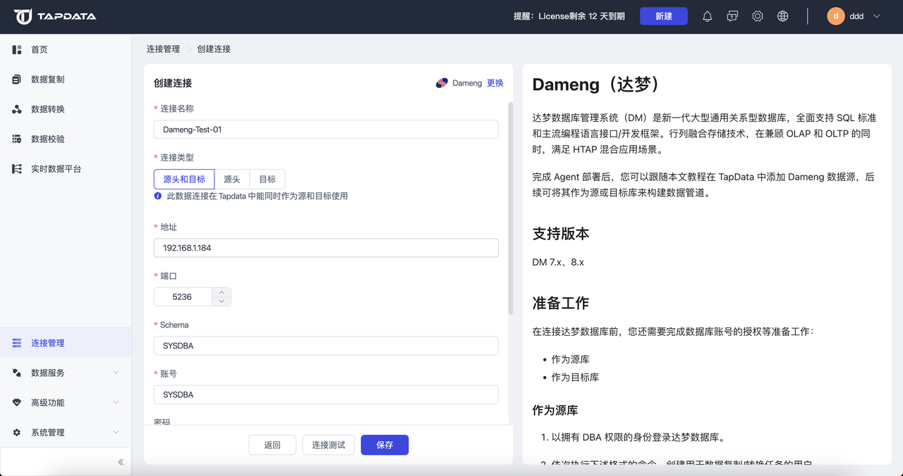 > 本文教程为:Oracle → Dameng 的数据同步任务。