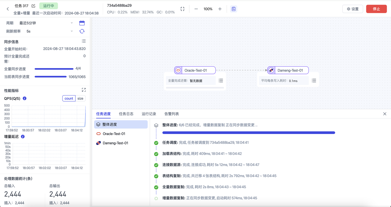 以上,便是借助 TapData 快速实现数据库 Oracle 到 Dameng 的全、增量同步的模拟教程。