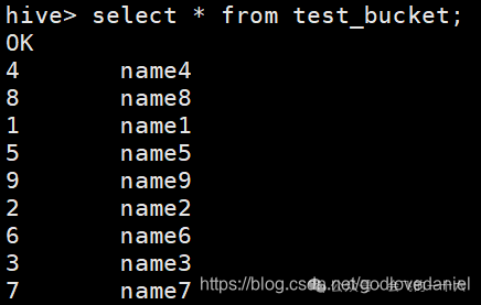 hive> select * from test_bucket tablesample (bucket 1 out of 2);OK8 name84 name42 name26 name6