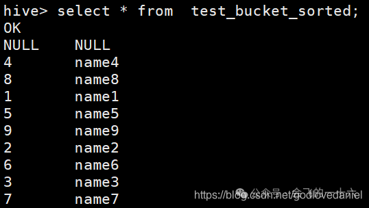 用sql看和用hadoop命令看每个文件,结果每个桶内都是按id升序排序的,也就是和最开始的截图是一样的。