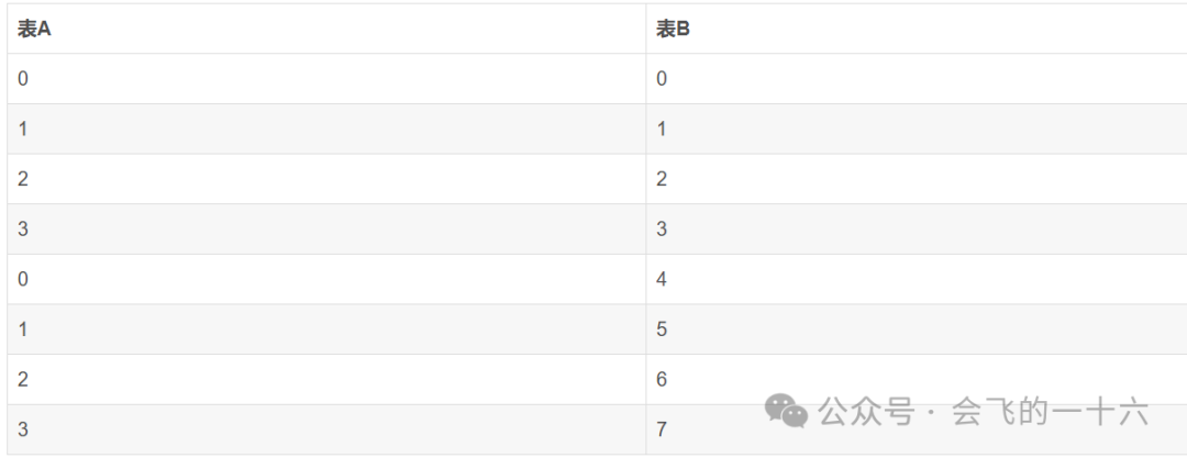 比如A表桶数为4,B表桶数为8,那么桶数对应关系为