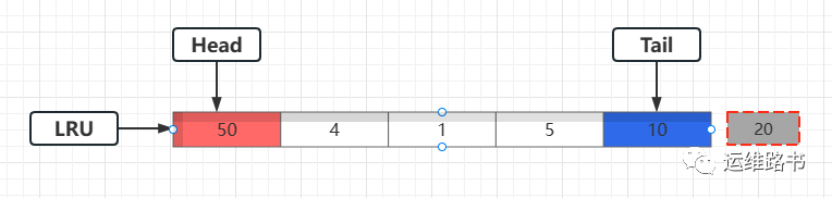 (2):页号50加入到LRU头部,尾部的20号页被淘汰