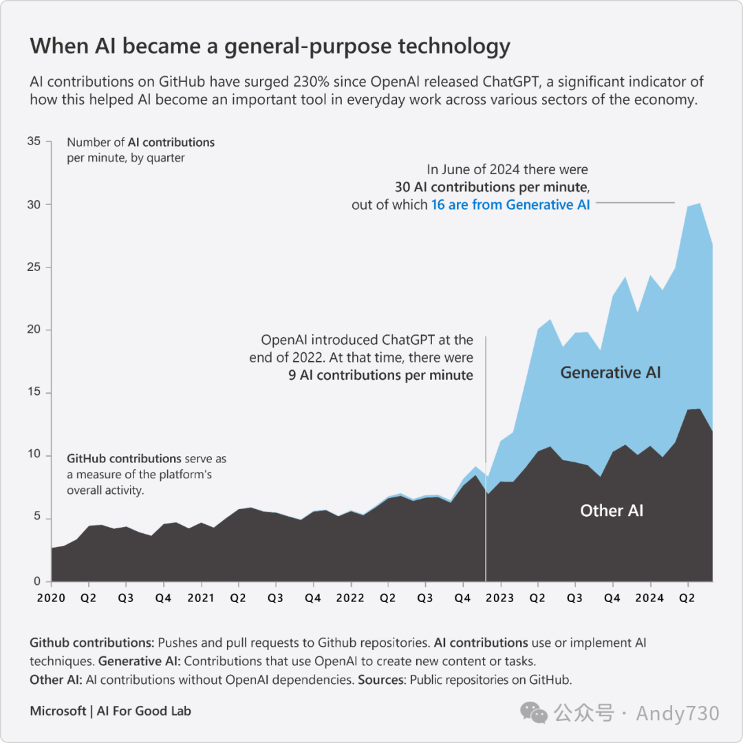 历史对比: 在ChatGPT发布之前,每分钟的AI贡献为9次。