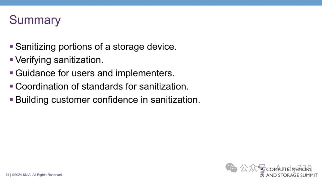 总结一下,一些新发展为我们提供了清除存储设备部分、验证销毁是否完成、为用户提供指导、为实施者提供方法,并协调销毁标准的机会。更重要的是,这些发展有助于建立客户对销毁的信心。