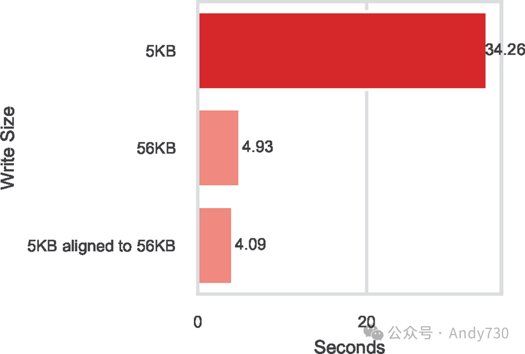 图11:对齐的5KB和56KB元数据大小下daos_array_write()时间对比