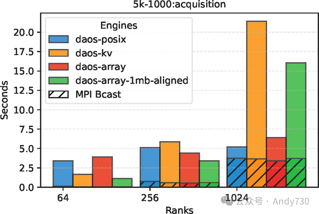 图12:小型元数据(5KB)情况下不同DAOS引擎的获取时间对比